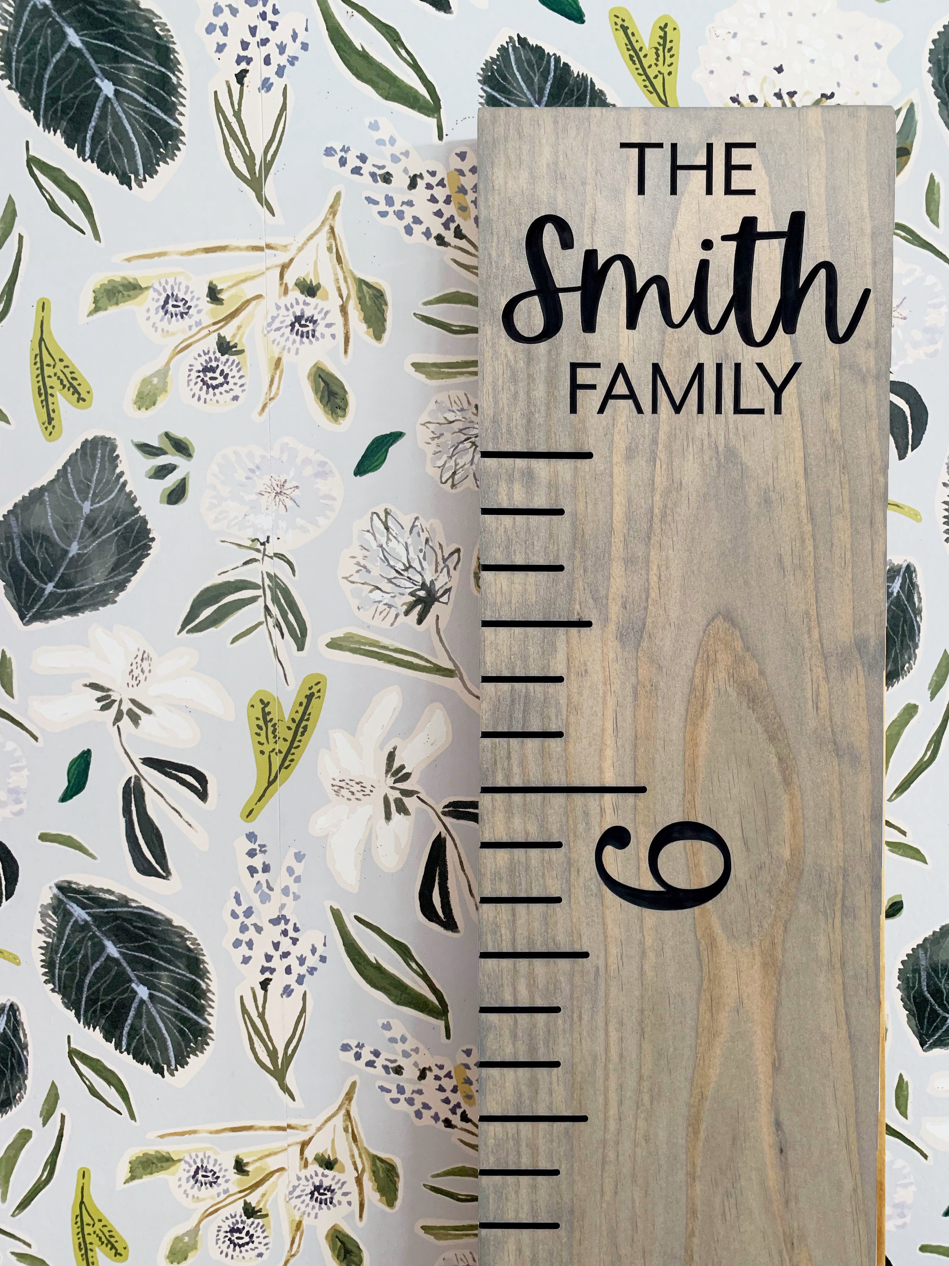 Our hand crafted wooden ruler growth charts are fully engraved and made to order. We offer several stain and paint options to match your home decor. Each piece is created from premium solid pine to withstand years of use and be a treasured heirloom for your growing family. They are the perfect gift for a baby shower, first birthday, adoption, housewarming or Christmas. Especially convenient for the family that moves around frequently. Easily installed and removed - don’t leave the memories behind on a door jamb!